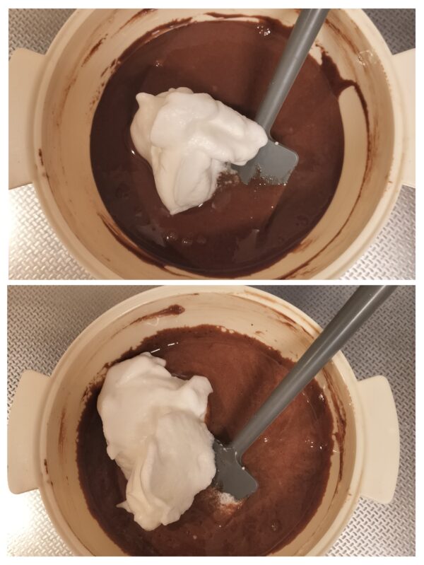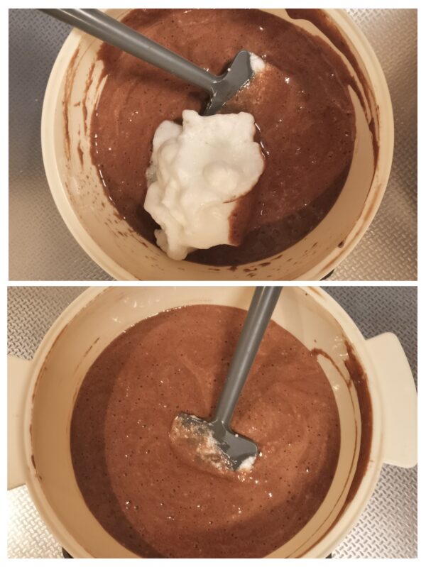 5.生地にメレンゲを混ぜ合わせます