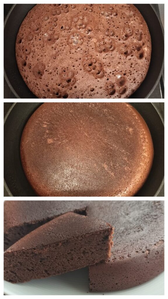 オーブン不要。ベーキングパウダーなし。フライパンで焼く米粉とココアパウダーの簡単チョコケーキの作り方を紹介しています。冷めても柔らかく、レンジで温めなおすとふわふわになります。