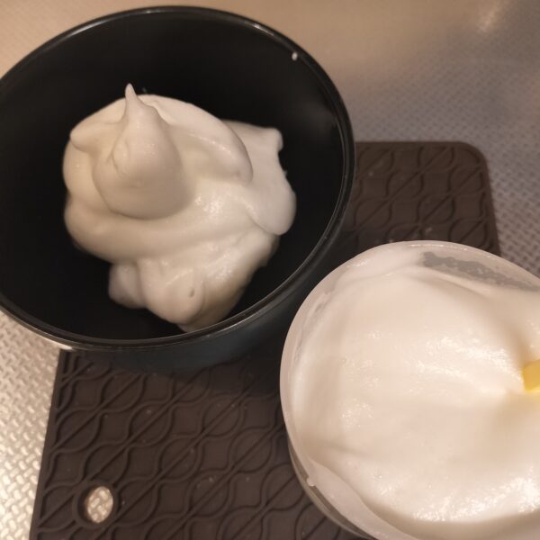 出来あがったメレンゲは別の容器に移し、ふわふわエッグメーカーの容器を洗わずそのままもう1個分の卵白を入れ同じようにメレンゲを作ります