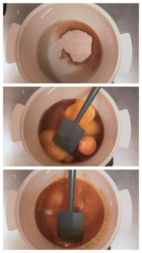 6.生地にメレンゲを混ぜ合わせ炊飯器で焼きます