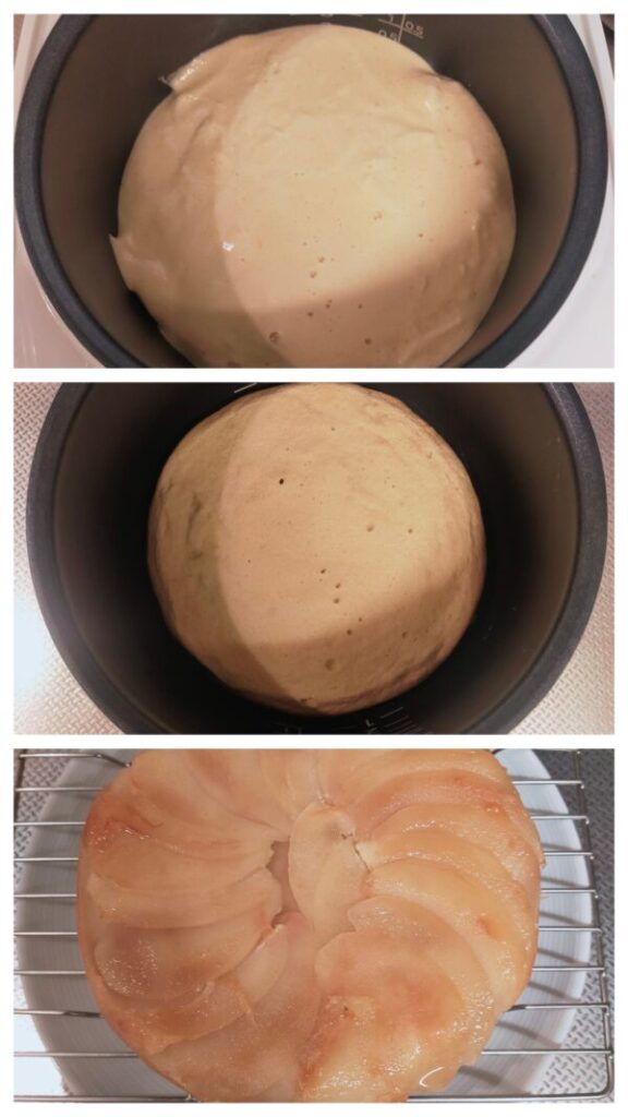 炊飯器で簡単。100均グッズのふわふわエッグメーカーでメレンゲを作るBPなし米粉りんごケーキの作り方を紹介しています。