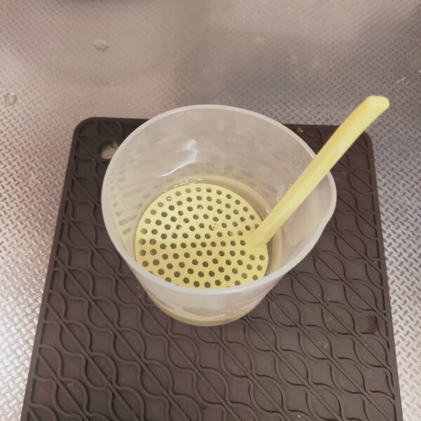 容器と水分が熱すぎると卵黄が固まります。必ず、冷ましてから作業してください。