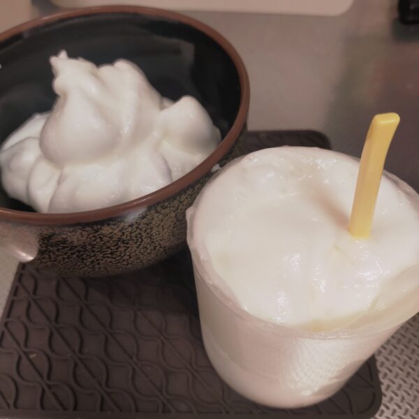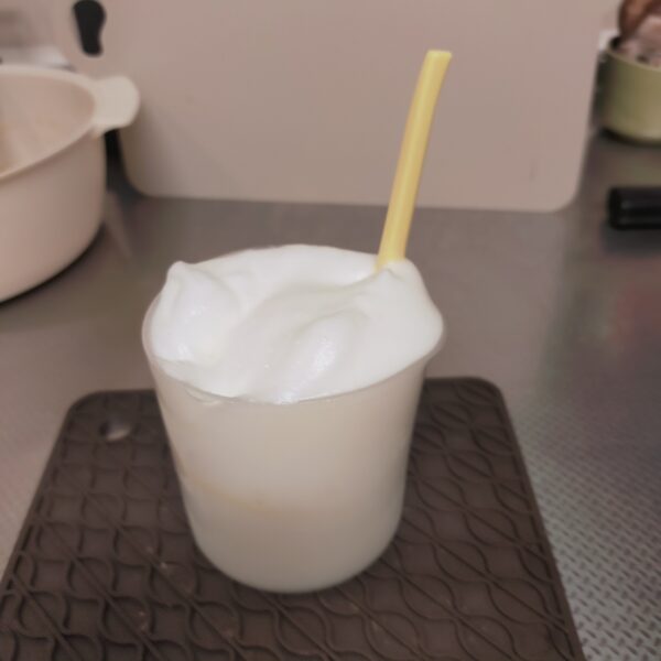 途中で、時々スティック入れ直したり、容器を回転させるように向きを変えると、全体が泡立ちやすくなります(約2分半~3分ほど動かし続けます)